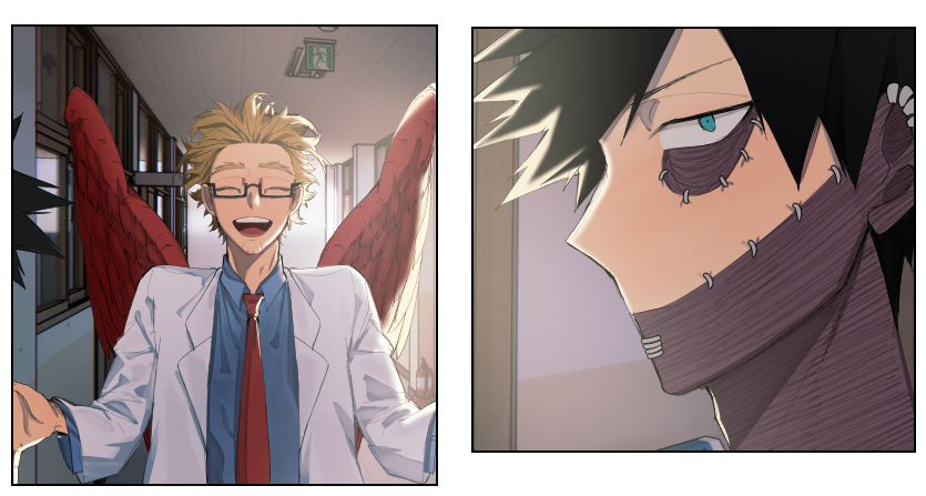 8-paged BNHA comic inspired by @/kadeart (twt) artwork! Feat. Dabi, Mirko, Compress, and Hawks!
